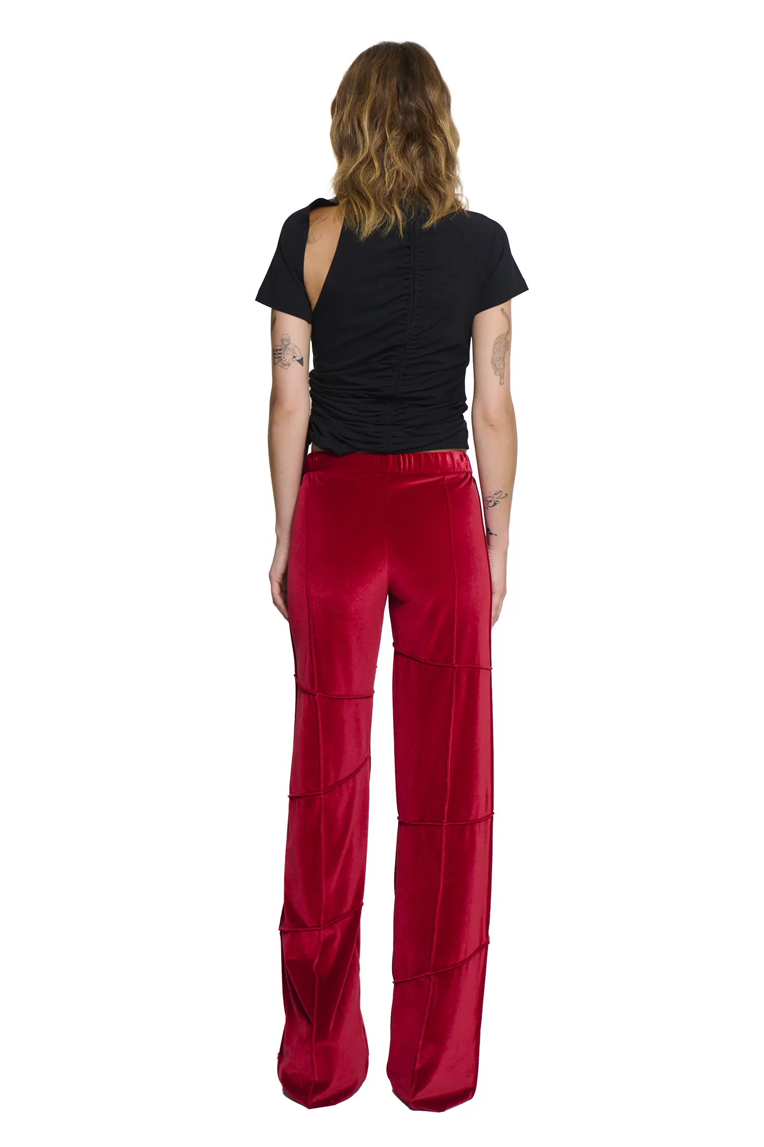 A mid-rise pant designed for everyday wear, featuring a comfortable elastic waistband and our signature Spider pin tucks that create subtle structure through the leg.