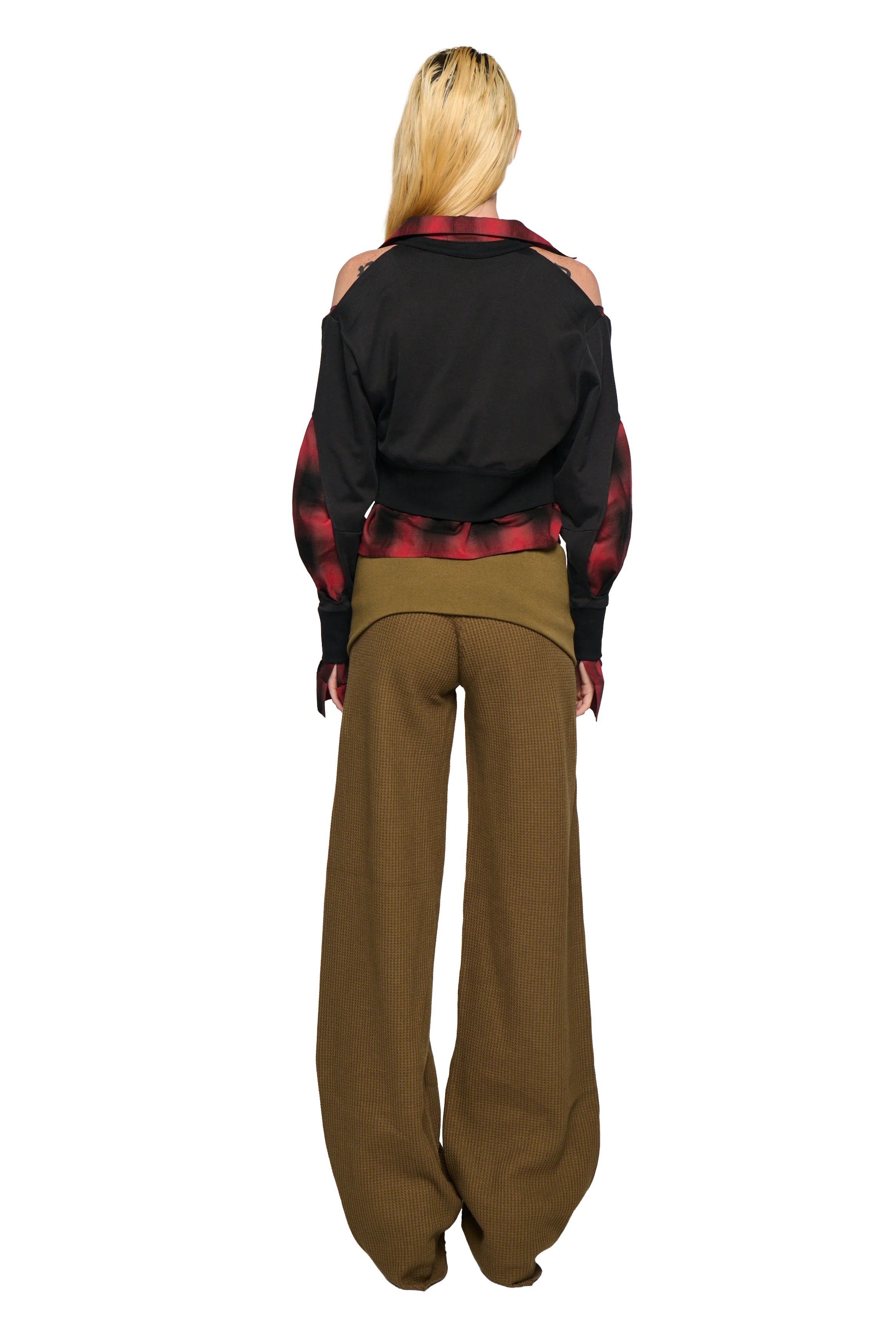 Made from a mid-weight waffle knit, these pants balance comfort with structure.